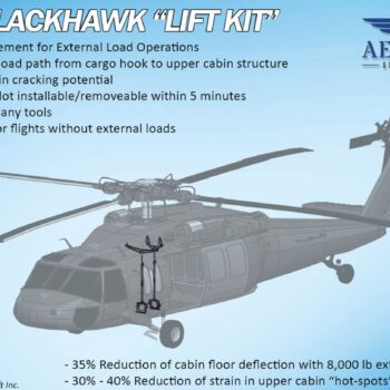 Installation of the H-60 Beam Loader is accomplished with no tools and can be completed by a single pilot. The assembly pins into place and is secure in less than two minutes.