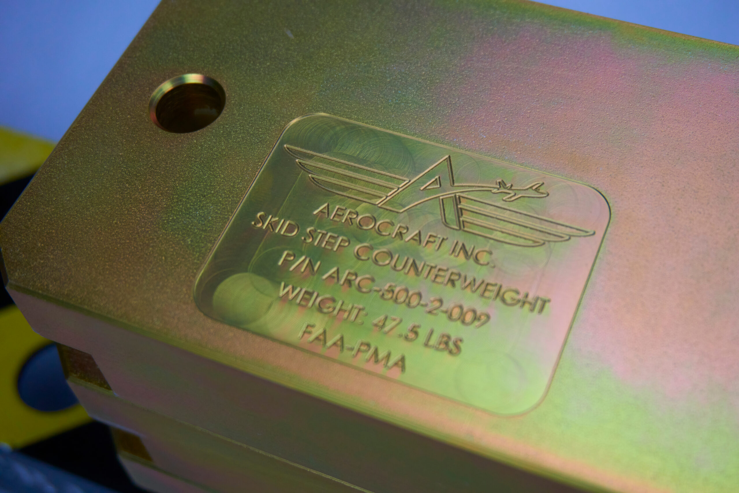 The Aerocraft MDHI Model 369D/E/FF & 500N Counterweight Kit attaches to existing mounting provisions in the Aerocraft Skid Tube Step to provide the user with up to 150 lbs of ballast onto the aircraft skid tube. The counterweight kit can be configured in a 50 lb, 100 lb, or full 150 lb ballast configuration to aid in correcting weight and balance when conducting skid transfer and utility operations outside of the aircraft.